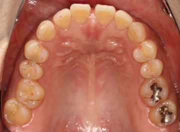 右下にセクショナルアーチを併用したマウスピース型カスタムメイド矯正装置(インビザライン)単独による治療
